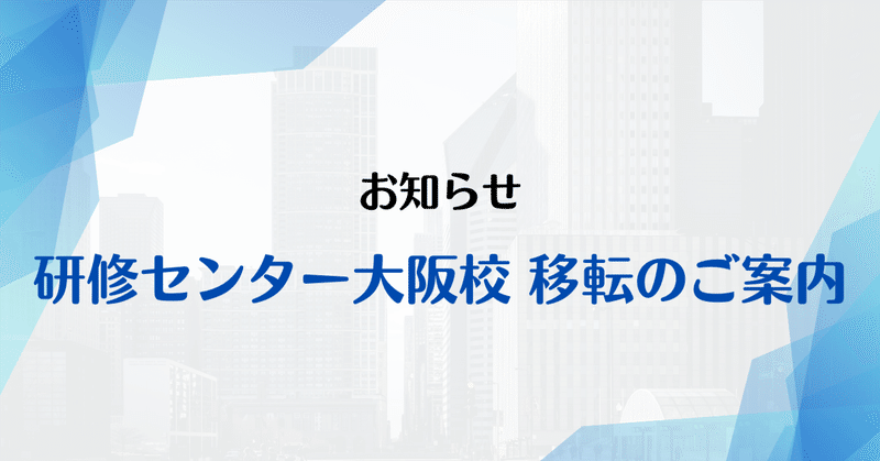 【お知らせ】研修センター大阪校 移転のご案内