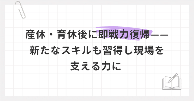 産休・育休後に即戦力復帰——新たなスキルも習得し現場を支える力に